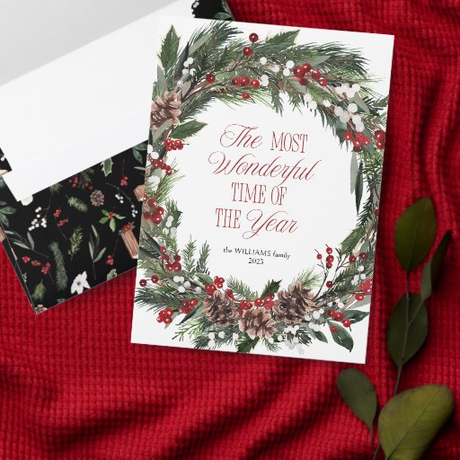 Modern Red Berry Wreath The Most Wonderful Time Designed by ANASTASIA SURRIDGE, Creative Director