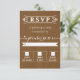Modern typography rustic wood wedding RSVP respone/reply card featuring modern typography design with vintage elements such as a frame on brown wood. This contemporary and trendy yet with retro elements design with some script fonts is fully customisable and is part of a wedding set.
