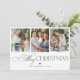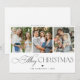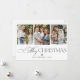 Elegant script simple elegant black and white 3 photo collage Merry Christmas holiday card with text template on the backside.