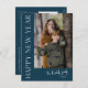 Modern Typography Simple Photo New Year Holiday postcard features a vertical photo and headline with customisable script name and text on the front. The back has a personal message and signature. Click the edit button to personalise this design.