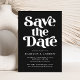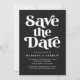 Modern save the date card featuring "Save the Date" displayed in bold white lettering with a speckled black background. Personalise the stylish save the date card with your names, wedding date, location, wedding website, and other important wedding details.