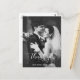 Modern Typography Wedding Photo Thank You Postcard with elegant white script on the front and black script on the back. Easily add your custom photo and text to the front and back of the postcard.
