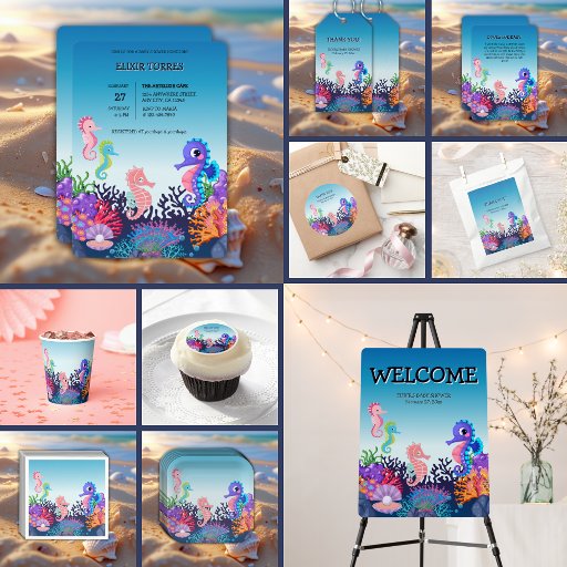 A Modern Under the Sea Seahorse Baby Shower is a chic and sophisticated celebration featuring soft ocean hues, minimalist seahorse motifs, elegant sea-inspired décor, and subtle aquatic details for a stylish and serene underwater ambiance. If you need any other matching product or customisation, kindly message via Zazzle.