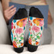 Add a pop of playful charm to your Valentine’s Day look with these vibrant floral socks! Featuring a whimsical array of colourful flowers in red, pink, orange, and blue, these socks celebrate love and joy in every detail. The design includes three monogrammed hearts, artfully placed for a personalised touch, adding an extra layer of thoughtfulness. Sleek black accents on the heels and toes adds to the style, making them a thoughtful gift or a festive wardrobe addition for Valentine’s Day.