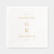 Elegant wedding foil napkins include a modern vertical monogram and personalised bride and groom's names. These custom napkins are perfect for a stylish wedding reception.