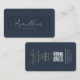 Modern VET Veterinary Veterinarian Monogram Dark Blue business card with QR code