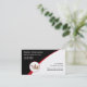 Veterinarian business card with unique logo emblem with dogs and a cat you can use on our cards or replace with your own Veterinary services logo. Designed in black red and white in a modern design that is easy to customize online for veterinary services, pet care, or groomer.