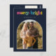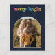 This "Modern Vibrant Merry + Bright Arch Photo Christmas Postcard" combines elegant deep blue with playful, colourful "merry + bright" lettering, creating a cheerful holiday greeting. Featuring a family photo in an arch frame, it’s a perfect blend of casual charm and modern style, making your festive message truly stand out.