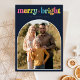 Modern Vibrant Merry + Bright Arch Photo Christmas Postcard
