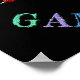 A fun modern design for gamers. A shimmery mosaic text pattern of the word "gamer" make up the background and the word GAMER in various shimmery colours in the centre to grab your attention.
