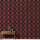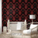 Modern Vintage Black and Red Damask Gothic Wallpaper