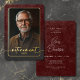 Celebrate in quiet, elegant style with this simple, modern retirement party invitation—designed with a style that's all about you. Featuring your favourite photo in a rounded rectangle shape beneath a softly darkened overlay and edged in real foil. A real foil modern script "retirement" stretches across the front and captures your style and sophistication. The background is a vintage style distressed burgundy, adding a touch of warmth and richness. Flip it over to find all your personalised details displayed on the same background that’s effortlessly chic. It’s the perfect way to share your big news with flair! Created by Simply Farmhouse Press.