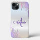 Modern Violet Glitter Drips,Silver,Monogram Case-Mate iPhone Case