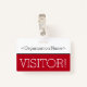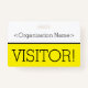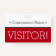 This sleek badge design features the message "VISITOR!", and a customisable company name or other custom message. A badge like this could be used to indicate that a visitor or guest at a workplace is allowed to be there. [~Z0000307]