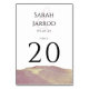 This table number features the bride and groom's names at the top. Also featured is coloured artwork from the Viva Magenta colour palette. Modern Viva Magenta Wedding Table Number.