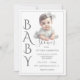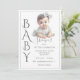 “BABY” typography with sweet watercolor baby girl in white dress added baby shower invitation. Simple & cute baby shower. 100% customer satisfaction with “Zazzle”