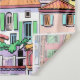 Elegant modern watercolor painting of houses in community in multicolor for nursery decor.
