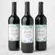 Modern Watercolor Blue Green Leaves Wedding Wine Label