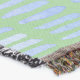Modern Nordic style pattern features blue watercolor strokes on medium green background