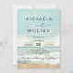 This beach wedding invitation design exudes coastal elegance with a serene watercolor ocean and sandy shore. The soft pastel hues create a romantic and peaceful atmosphere, perfect for seaside or destination weddings. Modern sans-serif typography paired with a delicate script font adds a contemporary yet timeless touch. The clean layout ensures all the essential details are easy to read, while the oceanic theme beautifully reflects the natural beauty of a beachside celebration. Ideal for couples seeking a chic and sophisticated way to invite guests to their special day by the sea. Available as printed cards or an instant digital download.