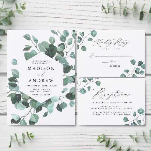 Modern Watercolor Eucalyptus Greenery Wedding Invitation