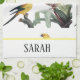 Modern Watercolor Floral Birds Monogrammed Tea Towel