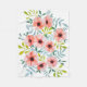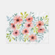 Watercolor pink flowers and green/blue leaves illustration on fleece blanket.