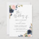 Modern Watercolor Floral Navy Blush Wedding Invitation