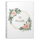 Modern Watercolor flowers Monogram Script Name Pink notebook
