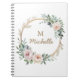Modern Watercolor flowers Monogram Script Name Pink notebook