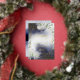 Modern watercolour eucalyptus on an abstract bold midnight blue painterly background. Bold geometric frame with pattern.