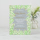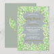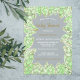 This baby shower invite is adorned with watercolor hand-painted leaves that dance gracefully around the edges, their green hues exuding a sense of freshness and growth. Each leaf, meticulously crafted, showcases intricate details that add a touch of sophistication. Set against a soft green backdrop, the golden and white text marries classic charm and modern artistry, promising an event as unique and special as the upcoming arrival.