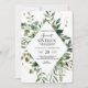 Modern Watercolor Greenery Frame & Gold Dots Invitation