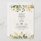 Modern Watercolor Greenery Leaf & Gold Drops Invitation