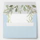 Modern watercolor greenery foliage blue envelope featuring delicate watercolor eucalyptus leaves on the inside. Designed by Thisisnotme©