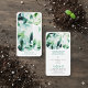 Modern business card, perfect for garden designers, landscape professionals, or botanical consultants. The design features a striking arrangement of watercolor leaves in lush green and blue tones, set within rounded geometric frames for a fresh, contemporary look. The front highlights your services—garden design, maintenance, and consultation—in clean, modern type, with ample space for your address, contact details, and social icons. The reverse showcases the same elegant botanical artwork, paired with your name and professional title in minimalist fonts. Ideal for anyone in the landscaping or horticultural field who wants a sophisticated, nature-inspired brand identity.