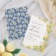 Step into a world of vibrant beauty with our modern and enchanting wedding invitation. The front is adorned with original, rustic inspired watercolor illustrations that are a testament to the zest and freshness of your love. The vibrant yellow of the lemons, with their tangy charm, are intertwined with lush green foliage and delicate white flowers. On the reverse your will find a whimsical floral pattern on a complementary blue background. Customise with ease to create your perfect wedding invitation.
