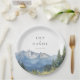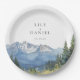 Modern Watercolor Mountain Wildflower Wedding Paper Plate