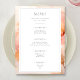 Imagine a wedding menu that feels like stepping into a beautiful garden of soft, fuzzy peach colours. This peach floral background menu brings together gentle pastel shades and stunning flowers in a modern and elegant way.