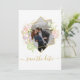 Wedding Save the Date card with delicate watercolor flowers and golden accents. Customise with photo on front and details on back