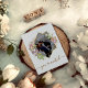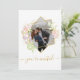 Wedding invitation with delicate watercolor flowers and golden accents. Customise with photo on front and details on back