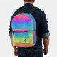 Modern Watercolor Pink Rainbow Stripes Monogram Printed Backpack
