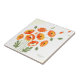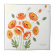 A bright and modern botanical illustration of red and orange poppies in full bloom, rendered in a clean watercolor style. Elegant green stems and buds complement the lively blossoms, creating a fresh, uplifting design perfect for spring and summer themes. Ideal for use as decorative ceramic art or a unique kitchen or bathroom tile accent.