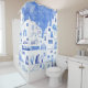 Modern Watercolor Santorini Greek Island Shower Curtain