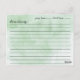 Contemporary Bridal Shower Kitchen Recipe Cards featuring a stylish black typography script font set on a green watercolor background background. The front of our recipe card offers room for a recipe title, from the kitchen of and ingredients space. Flip our recipe card over to view directions, prep time & total time. Visit our shop for matching bridal shower invitations Available in our shop in a large assortment of popular wedding shower colours. Perfect bridal shower invitation insert for a stock the kitchen bridal shower.