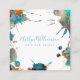 Turquoise blue calligraphy script typography and rich, silver, turquoise blue, and orange watercolor ink splatters overlay a white background on this chic, elegant, modern square business card. Personalise with your full name and business on the front. Fill in the back side with your phone numbers, address, email, website, and social media accounts. Makes a chic, professional, and stylish statement wherever you go.
