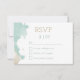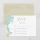 Trendy minimalist wedding RSVP card done in white background, with graphics of tan and mint green watercolor splashes, on the left side. Personalise the custom text for your special day. Matching products are available.