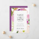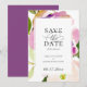 Elegant and modern watercolor summer floral, save the date wedding announcement. Artsy watercolor floral in blush pink and cassis purple with coordinating purple colour backing. Part of a collection.