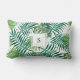Modern watercolor tropical leaves monogram lumbar cushion
