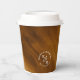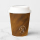 A handwritten, signature font combined and glitter-veined marble backgrounds add just the right touch for an elegant wedding in most pieces of this wedding set. The coordinating paper cup shown here features a minimalist design of your names, initials and wedding date on a russet and gold, watercolor background. Search ID816 to see other pieces and color choices for this set.